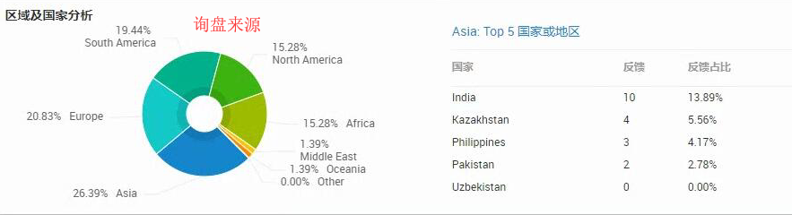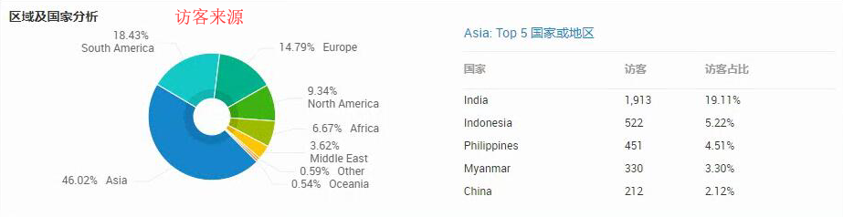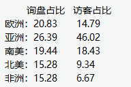 很明显,亚洲访客最多,但发送询盘的几率是比较低的,欧洲和北美洲的访客发送询盘的几率比较高,所以高转化目标群体应该是欧洲和美洲,那么推广时段应该是北京时间傍晚到第二天早上。