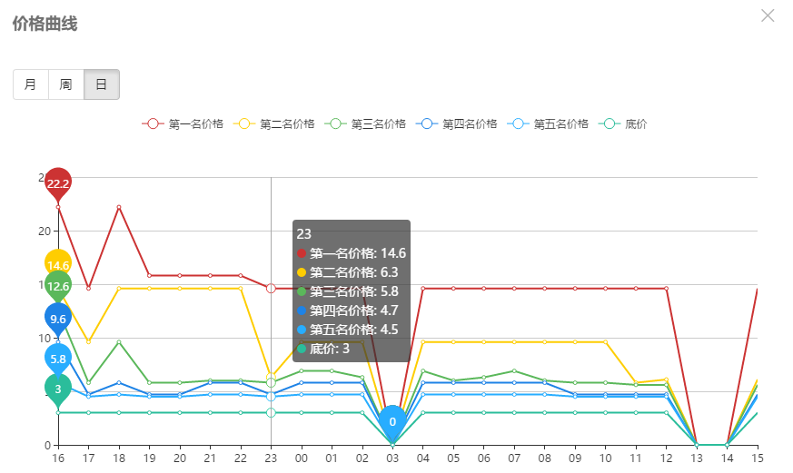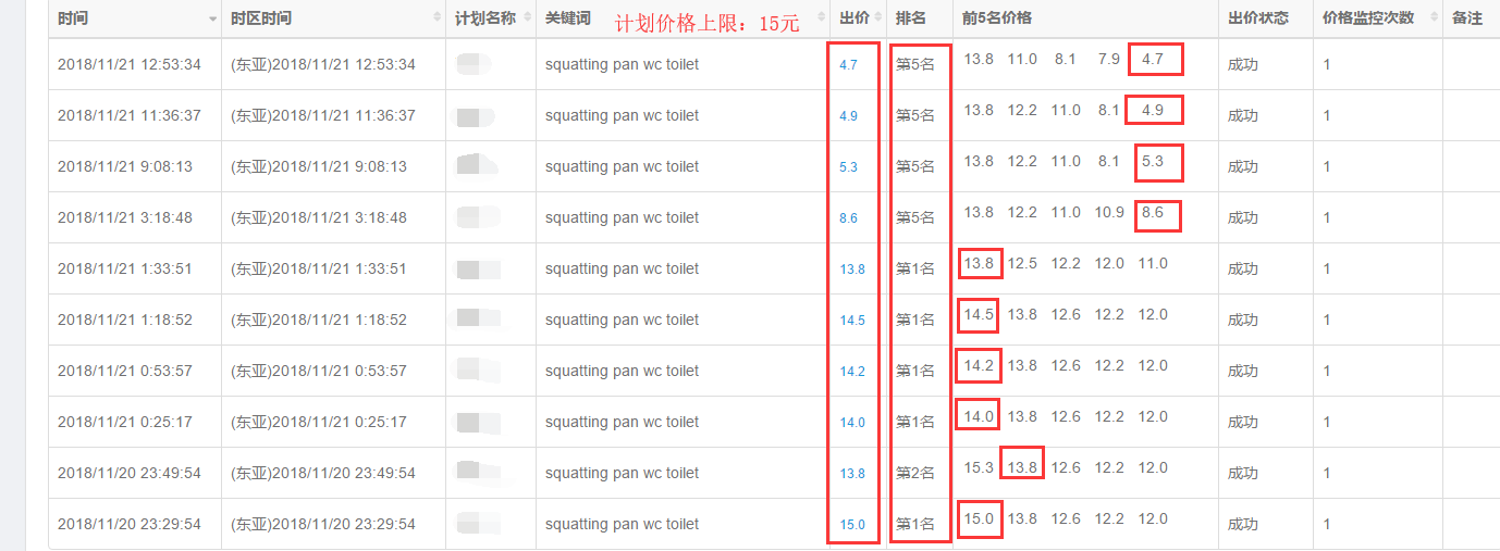 如该词有在计划中,则到P4P助理的词库管理中,检查该词的价格曲线,看目前的出价策略是否是合理的,如果不合理,就需要调整关键词的推广计划,让出价更合理,避免乱花钱或没排名,举个例子: